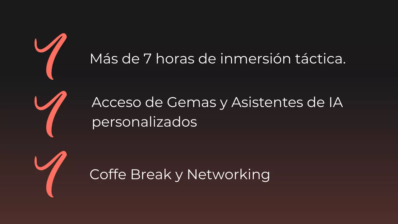 En este BLUEPRINT de MÁS DE 10 horas intensivas, no vienes a escuchar; vienes a construir tu plan de negocios y marketing con Inteligencia Artificial.