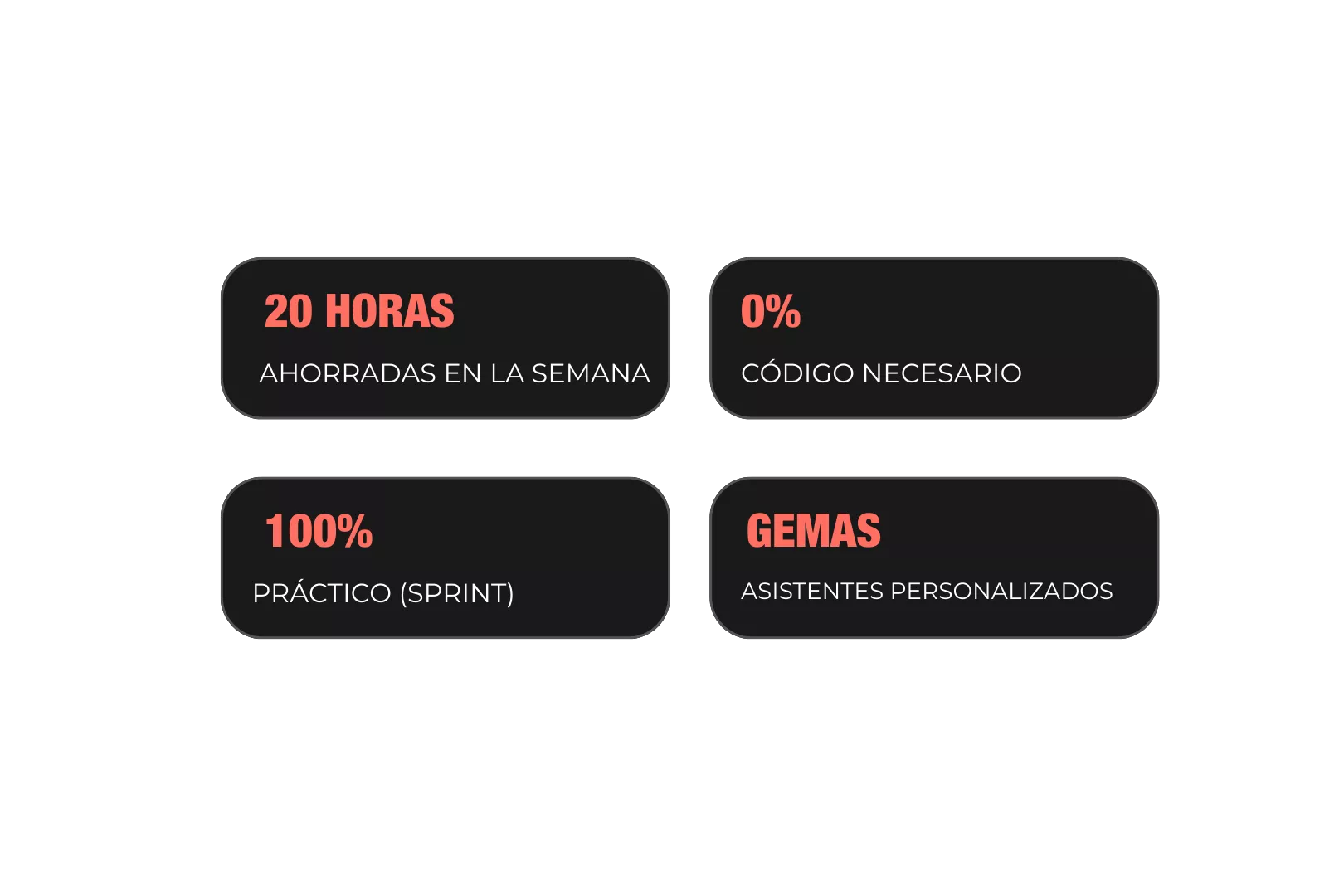 Un curso para estudiantes, profesionales, emprendedores y curiosos que buscan dejar de hacerlo todo solos. Integra ayudantes digitales con IA para que hagan el trabajo pesado por ti y descubre que, con la tecnología correcta, todo es posible.